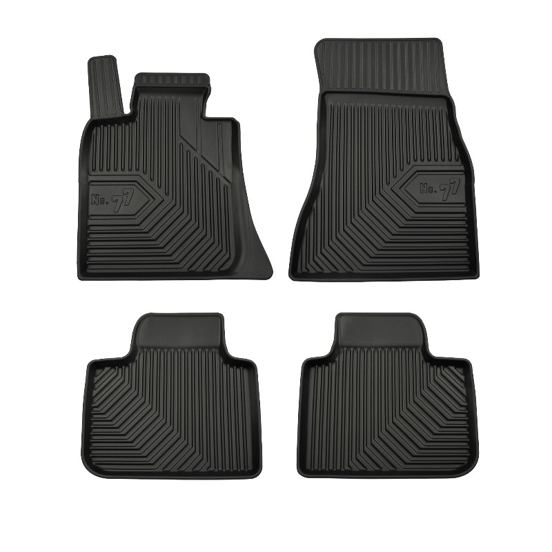 Rubber Premium 77 paklājiņi: (augstas kvalitātes plastmasa, gumijas maisījums / TPE, komplekts - 4 gab., melni, malas augstums 4 cm, uzstādīšanas metode - klipši).