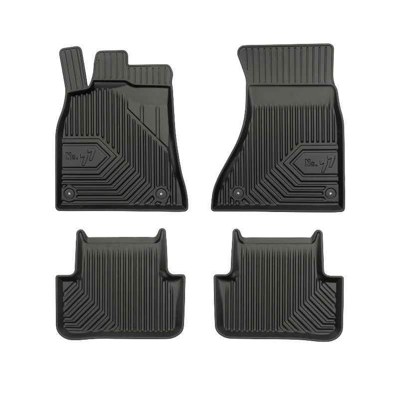 Rubber Premium 77 paklājiņi: (augstas kvalitātes plastmasa, gumijas maisījums / TPE, komplekts - 4 gab., melni, malas augstums 4 cm, uzstādīšanas metode - klipši).